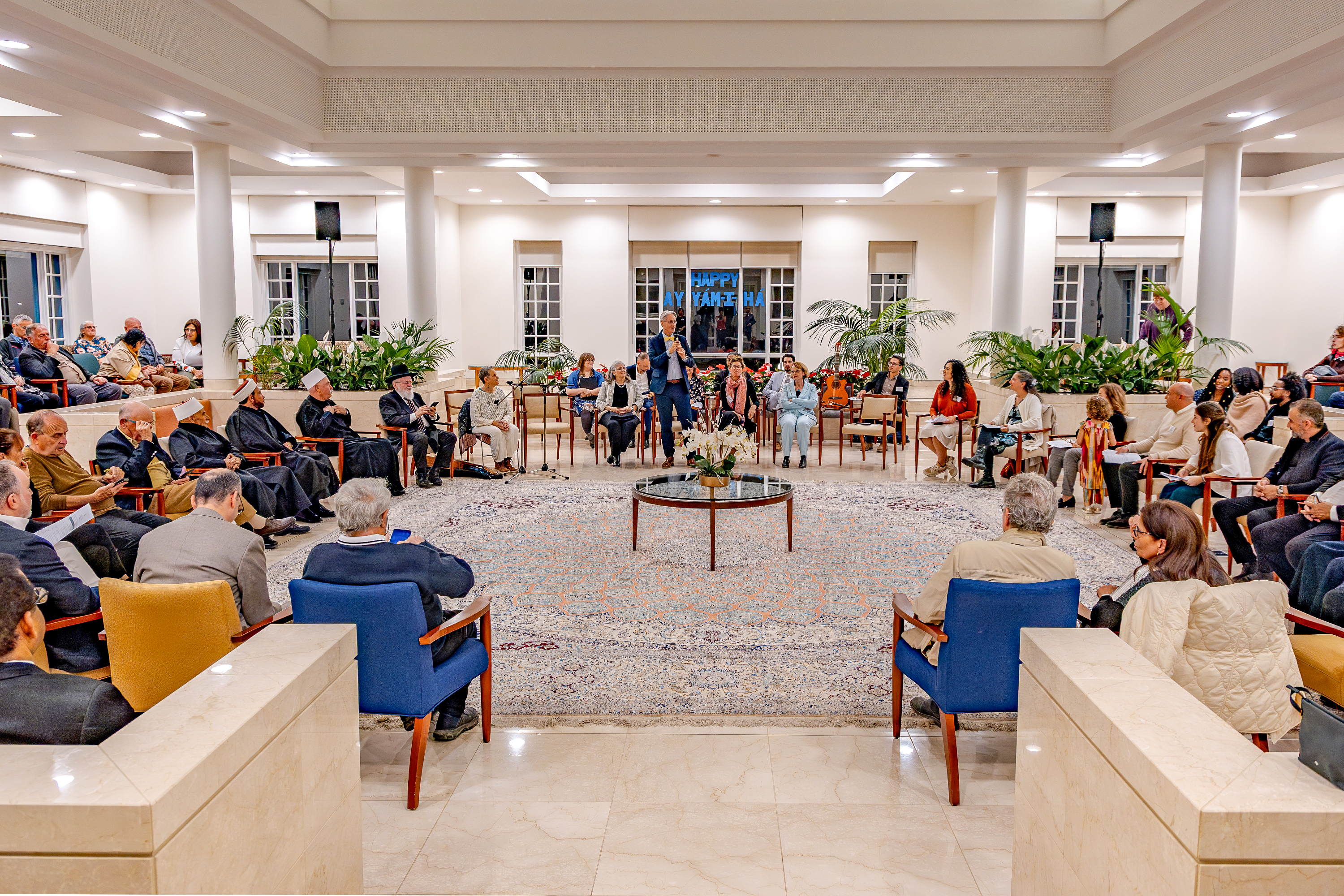 CENTRE MONDIAL BAHÁ’Í, le 5 mars 2026 – La semaine dernière, plus de 70 invités venus entre autres des communautés juive, musulmane, chrétienne et druze se sont réunis à proximité du tombeau de Bahá’u’lláh à Bahjí pour une soirée spéciale consacrée à la prière, à la lecture d’Écrits sacrés et à la musique afin de célébrer Ayyám-i-Há, une période du calendrier bahá’í dédiée à l’hospitalité, à la générosité et au service à autrui.